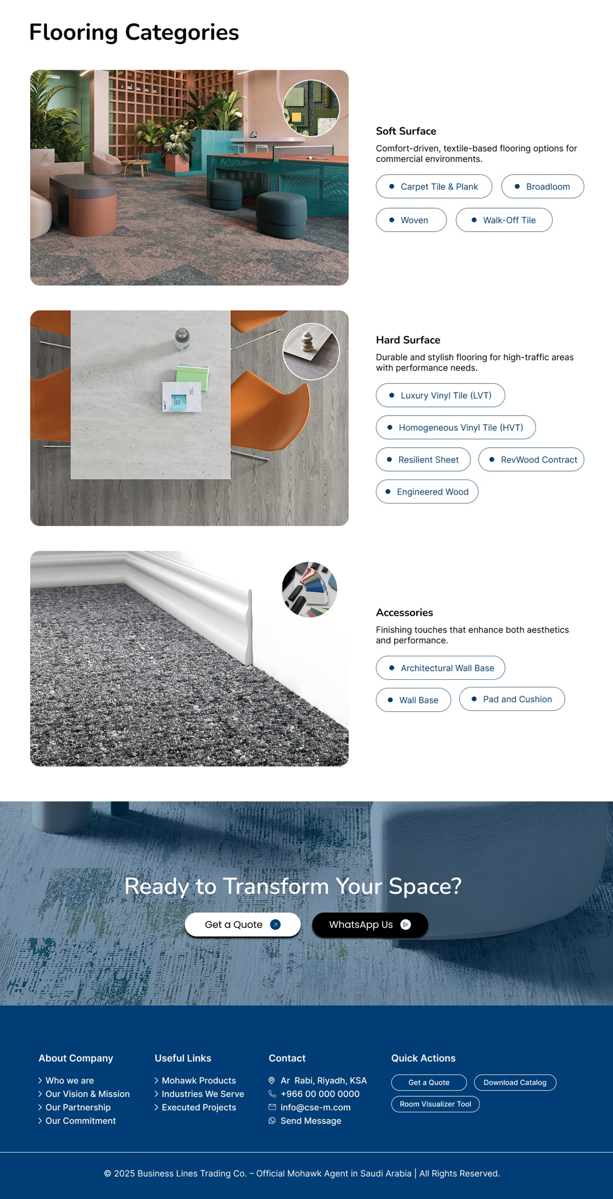 Business Lines Trading Co. (BLC) is a leading interiors and flooring solutions provider in Saudi Arabia. As the official agent of Mohawk Group, they focus on delivering world-class flooring products and modern interior solutions for corporate, educational, and commercial spaces.